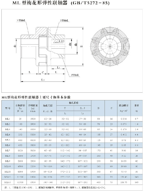 ML系列梅花形彈性聯(lián)軸器主要由兩個帶凸齒密切嚙合并承受徑向擠壓以傳遞扭矩,當兩軸線有相對偏移時,彈性元件發(fā)生相應(yīng)的彈性變形,起到自動補償作用。
