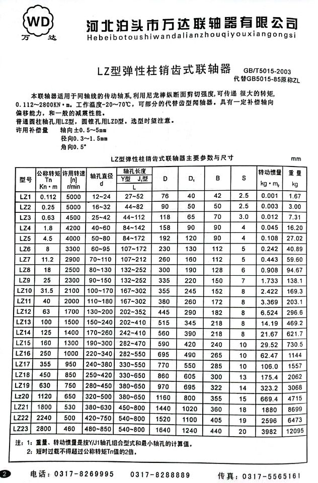 LZ型彈性柱銷聯(lián)軸器參數(shù)見下表