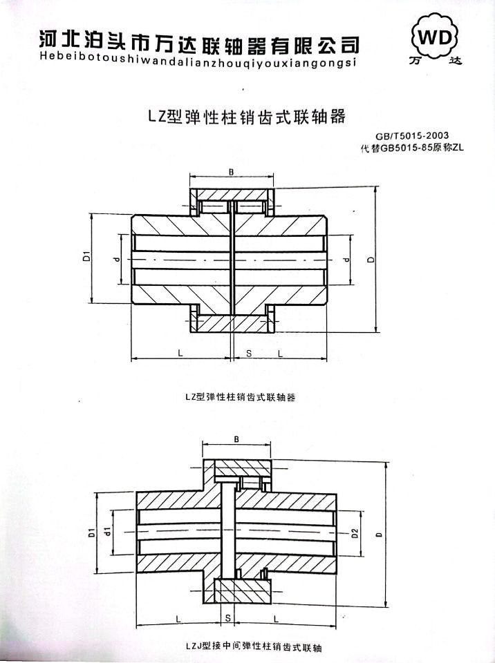 LZ型彈性柱銷齒式聯(lián)軸器適用于嶁軸線傳動軸系,利用尼龍棒縱斷面剪切強度,可傳遞很大的轉(zhuǎn)矩0.112-2240KN.M 工作溫度-20-70度,可部分代替齒式聯(lián)軸器,具有確定的補償軸向偏移能力,和一般減震性能,普通圓柱軸孔用LZ型,圓錐軸孔用LZD型,選型時注意。LZ型聯(lián)軸器由三大部分組裝而成,兩側(cè)主,從動軸上的半聯(lián)和中間的軸套通過尼龍棒咬合聯(lián)接。半聯(lián)軸器材質(zhì)45號碳鋼,彈性體采用強度好尼龍材質(zhì)。